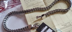 Full-fledged silver chain around the neck.